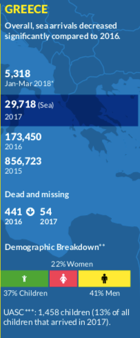 Sebbene dal 2016 la rotta del Mediterraneo orientale abbia risentito in modo significativo delle politiche restrittive adottate da molti paesi est-europei e della dichiarazione UE-Turchia del marzo 2016, ad oggi il flusso lungo quella direttrice non può dirsi del tutto cessato. Nel 2017, secondo UNHCR, 29.718 migranti di cui 1.458 minori prevalentemente provenienti da Siria, Iraq e Afghanistan hanno raggiunto la Grecia dalla Turchia attraversando il Mar Egeo. Nel 2018 la mobilità lungo questa pericolosa rotta marittima è aumentata rispetto al (al 6 marzo erano stati registrati 3.126 arrivi nelle isole greche, rispetto ai 2.689 rilevati nello stesso periodo del 2017). Analogamente, rispetto al 2016, sono aumentati dell’80% gli attraversamenti terrestri dalla Turchia alla Grecia per un dato pari a 5.500 persone censite nel 2017 e 838 rilevate nel primo trimestre del 2018 a fronte rispetto dei 291 dello stesso periodo del 2017.